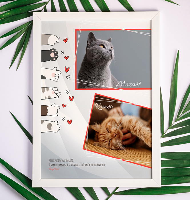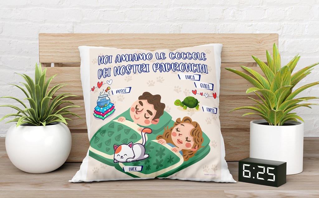 Le grafiche presentate in questa sezione possono essere completamente personalizzate ed adattate a tre prodotti differenti: stampa fotografica, stampa su cuscino e tovaglietta plastificata.