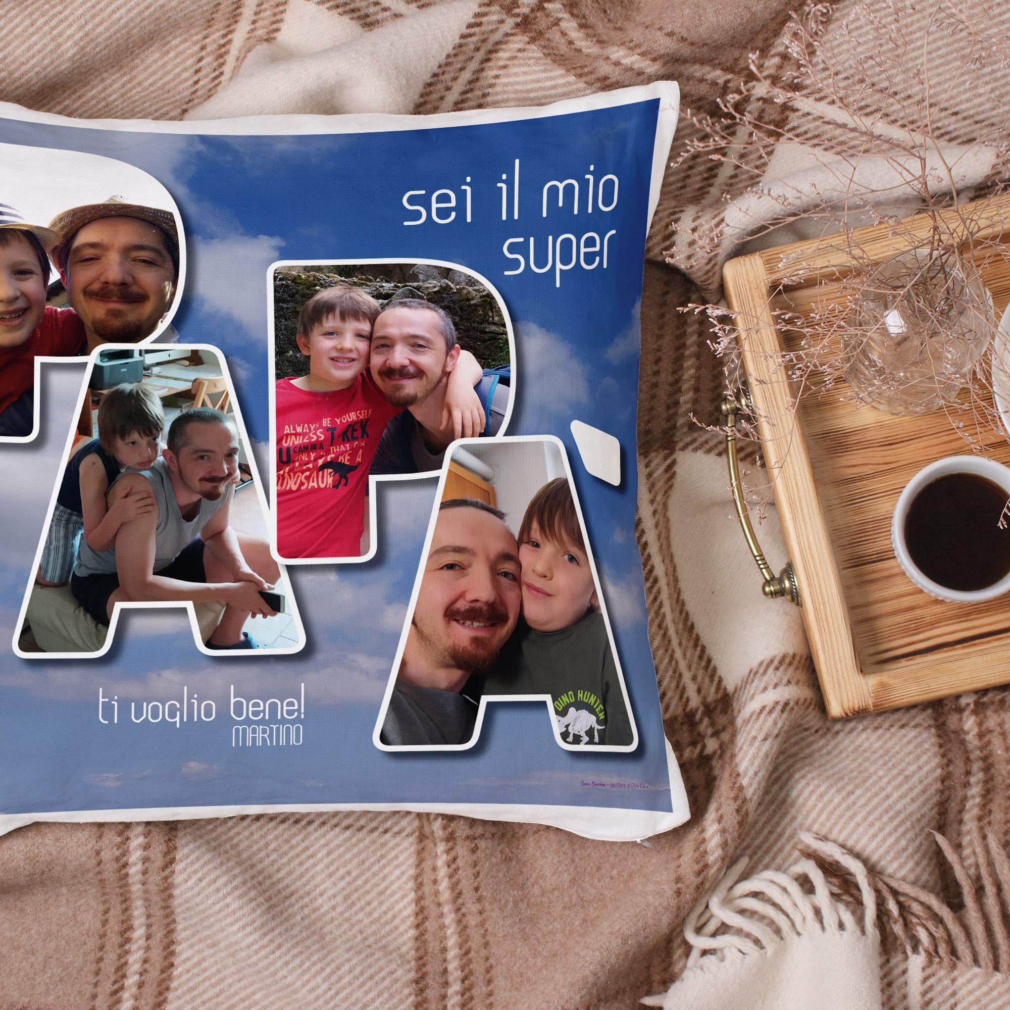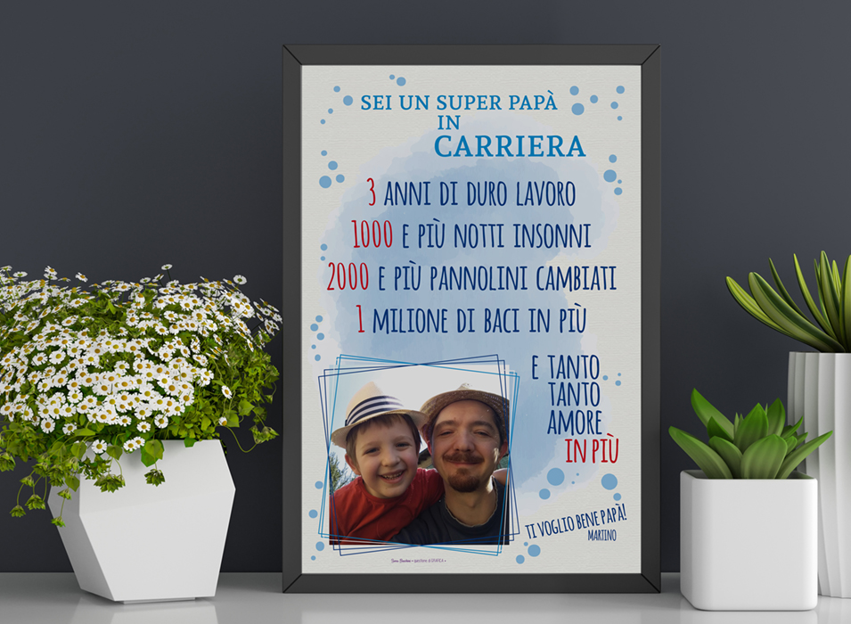 Le grafiche presentate in questa sezione possono essere completamente personalizzate ed adattate a tre prodotti differenti: stampa fotografica, stampa su cuscino e tovaglietta plastificata.